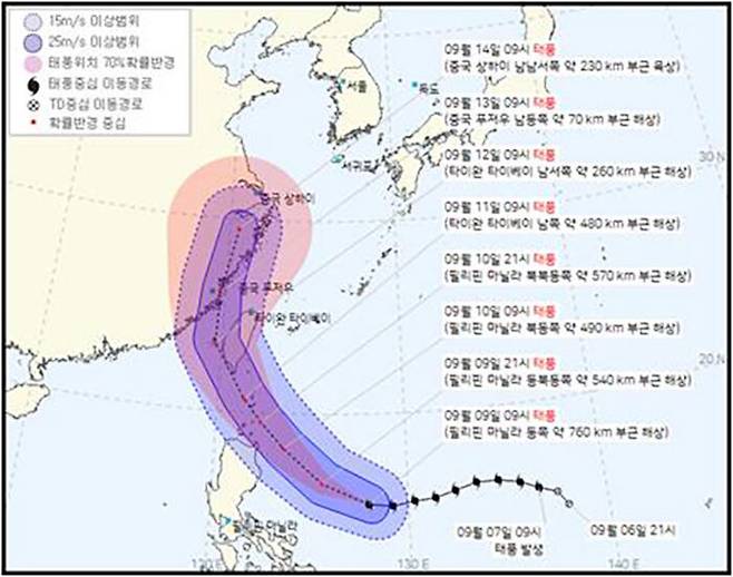 타이완을 거쳐 북상하는 경우 오는 14일을 전후해 우리나라에 영향을 줄 수 있습니다.