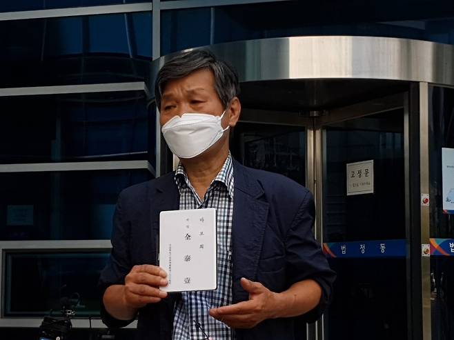 재판 후 전태일 열사 동생 태삼 씨가 기자들을 만나고 있다. 2021.9.9