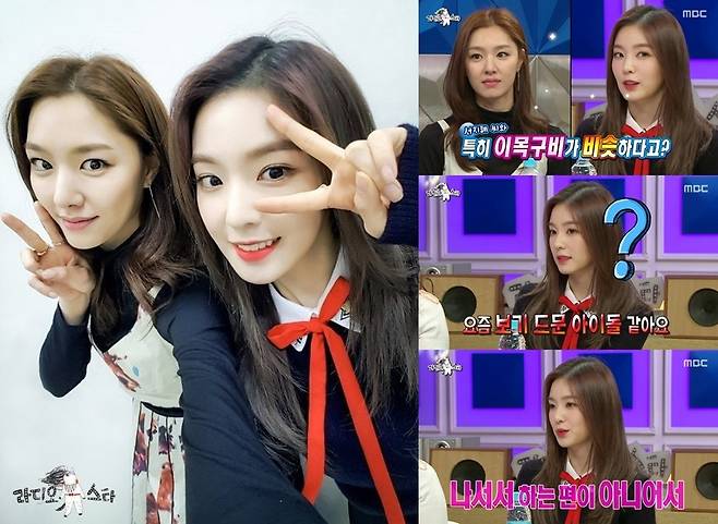 배우 서지혜와 레드벨벳 아이린도 닮은꼴 미녀로 꼽힌다. 앞서 인터넷 커뮤니티와 SNS에서 청순하면서도 세련된 미모로 화제가 된 두 사람은 MBC 예능 프로그램 '라디오스타'에 함께 출연했다. 친자매라고 해도 믿을 만큼 닮은 두 사람 모습에 MC들은 절세미인이라며 감탄했고, 서지혜는 "나보다 더 예쁜 것 같다"고 아이린을 칭찬했다. '라디오스타' 측에서 공개한 대기실 셀카에서도 두 사람은 비슷한 분위기를 자랑한다.