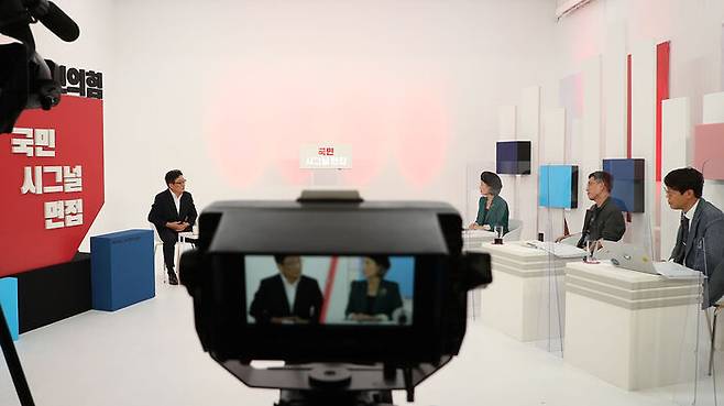 서울 금천구의 한 스튜디오에서 열리는 '국민 시그널 면접'은 당 유튜브 채널인 오른소리TV 등을 통해 생중계되며, 실시간 댓글로도 질문이 가능합니다.