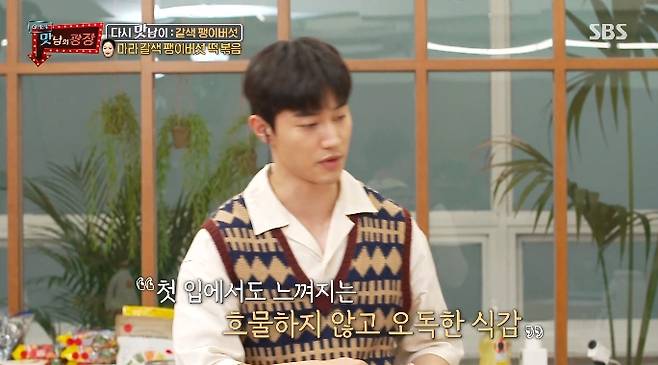최예빈은 식감에 대한 극찬이 이어지자 "만약 여기에 팽이버섯이 안 들어갔으면 어땠을까. 정말 상상하기도 싫다. 버섯을 더 넣어도 될 것 같다"며 뿌듯함을 드러냈다. (사진=SBS '맛남의 광장' 캡처)