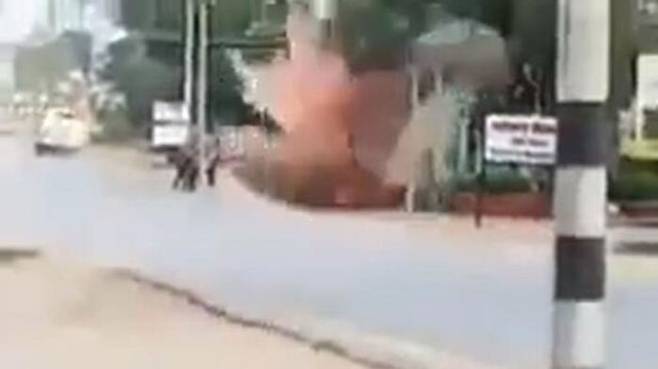 검문 검색에 나선 군인 3~4명이 서 있는 도로의 한쪽에서 갑자기 폭발이 일어나면서 흙먼지가 피어오르는 장면이 담겼습니다.