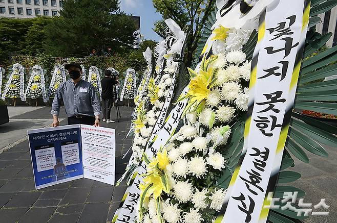 '빛나지 못한 결혼식' 부케 대신 근조화환 시위