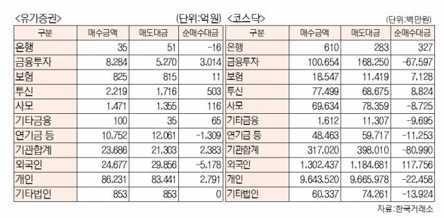 - [표]유가증권 코스닥 투자주체별 매매동향(9월 7일-최종치)