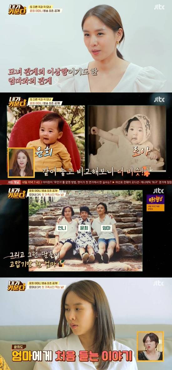 조윤희는 "저희 엄마는 순박한 분이다. 도시에 오래 살았지만 시골 감성이 많으신 분이다"라고 소개했다. 그러면서 조윤희는 "어렸을 때부터 언니랑 저랑 엄마는 많이 친했다. 남자친구 얘기도 하고 학교에서 있었던 일도 얘기했다. 그래서 로아도 저와 모든 걸 공유하는 엄마와 딸이 됐으면 좋겠다"라고 밝혔다.