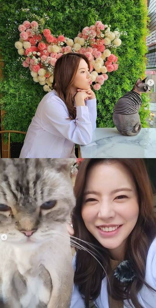 또 다른 사진에는 고양이와 귀엽게 장난치는 써니의 모습이 담겨 있다.