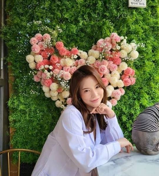 사진 속 써니는 꽃으로 장식된 배경 앞에서 사랑스러운 미소를 짓고 있다.