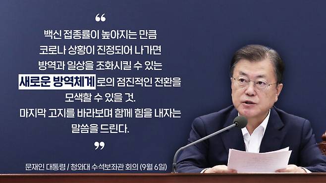 '위드 코로나'라는 표현을 쓰지는 않았지만, "새로운 방역체계로의 점진적인 전환"이라는 말을 대통령이 했다는 사실에 주목해야 한다. 정은경 질병관리청장은 한발 더 나아가 구체적인 시점을 언급했다.
