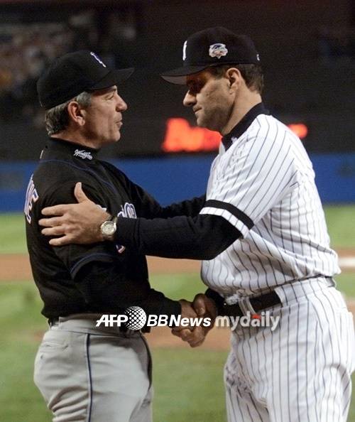 [뉴욕메츠와 양키스의 9.11 20주년 경기와 2000년 월드시리즈 당시 밸런타인과 조 토리 감독. 사진=AFPBBNews]- ⓒ마이데일리(www.mydaily.co.kr). 무단전재&재배포 금지 -