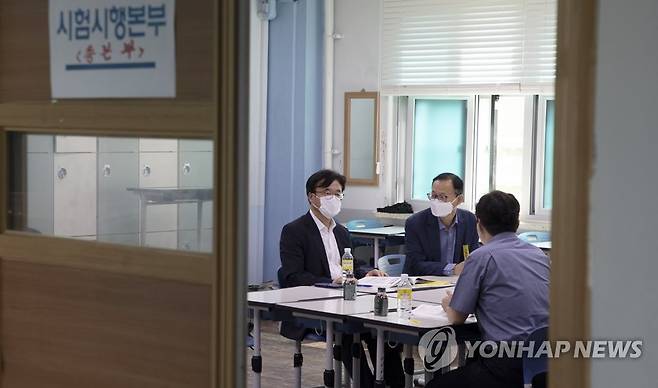 (서울=연합뉴스) 최재용 인사혁신처 차장이 11일 서울 송파구의 한 고등학교에서 치러지고 있는 지역인재 9급 수습직원 선발 필기시험장을 방문해 시험 현황 등을 점검하고 있다. 2021.9.11