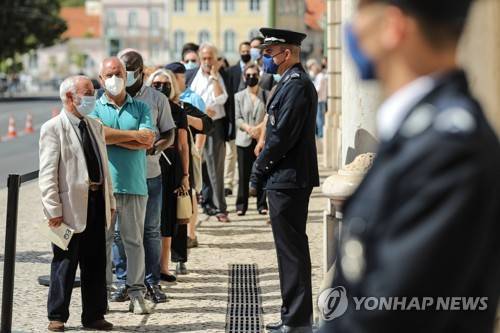 epa09460929 Mourners wait in a line to pay tribute during the funeral service for the late Portuguese President, Jorge Sampaio, at Belem Palace's Royal Arena, Portugal, 11 September 2021. Jorge Sampaio, former secretary-general of the Socialist Party 'PS' (1989/1992) and two-term President of the Republic (1996/2006), died on 10 September 2021, at the age of 81, at Santa Cruz Hospital, in Lisbon, where he had been hospitalized since 27 August, following respiratory difficulties. EPA/MIGUEL A LOPES