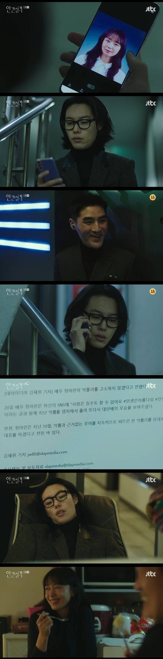 아란은 종훈(류지훈 분)을 찾아가 자신에게 악플을 다는 부정 고소를 취하했다며 “네가 있잖아. 겁만 주는 거지”라고 말했다. 아란은 종훈을 통해 부정을 협박할 계획. 종훈은 강재에게 전화를 걸어 “정우가 먹튀 한 일”이라며 부정의 이력서와 사진을 보냈다. 강재는 부정의 사진을 알아보고 “뭘 언제까지 하면 되냐”고 물었고 종훈은 “나쁜 건 뭐든지 다”라고 답했다.