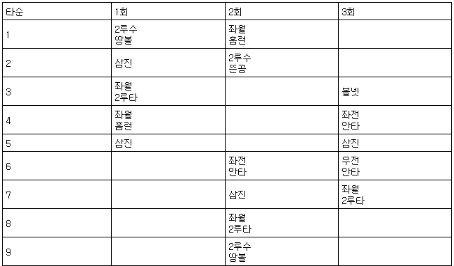※ 2회 1사 2, 3루에서 마틴 땅볼에 3루 주자 세베리노 득점.