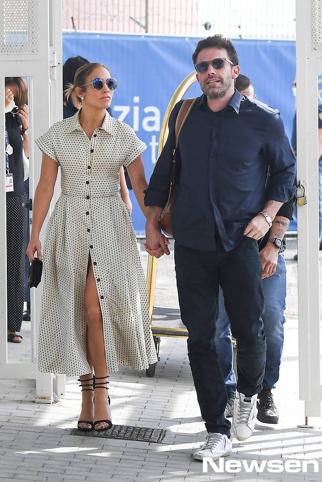 제니퍼 로페즈와 벤 애플렉은 9월 10일(현지시간) 이탈리아 베니스에서 열린 제78회 베니스 국제영화제 레드카펫 행사에 나란히 함께 섰다.