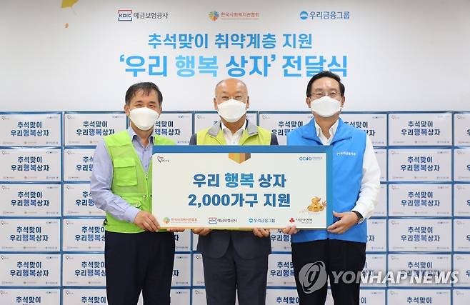 우리은행과 예금보험공사는 코로나19로 어려움을 겪는 취약계층이 풍성한 추석명절을 보낼 수 있도록 한과, 떡국떡, 혼합잡곡, 김, 장아찌 등 명절 식품 등으로 구성된 '우리행복상자' 2천여개를 한국사회복지관협회 산하 전국 종합사회복지관에 전달한다.
