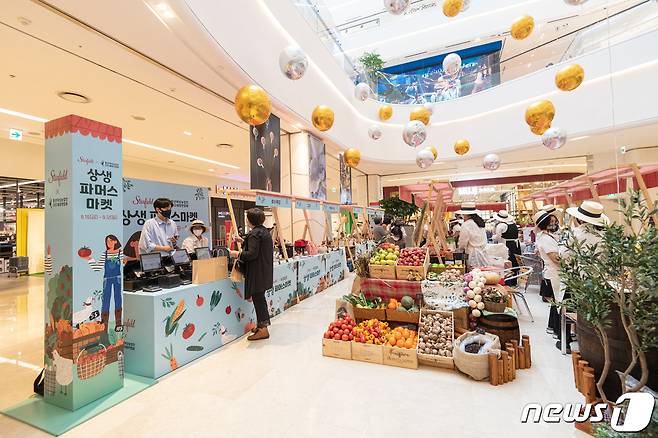 '상생 파머스 마켓’은 스타필드 하남이 코로나19 장기화로 인해 많은 농산품이 판매처를 찾지 못하고 있다는 소식을 듣고, 중년여성농업인 CEO중앙연합회와 농산품 직거래 장터를 열고자 마련됐다. ‘상생 파머스 마켓’은 전국 농가 20곳이 참여, 농업인들이 직접 재배하고 제조한 산지 특산품을 만나볼 수 있다. (신세계프라퍼티 제공) 2021.9.12/뉴스1