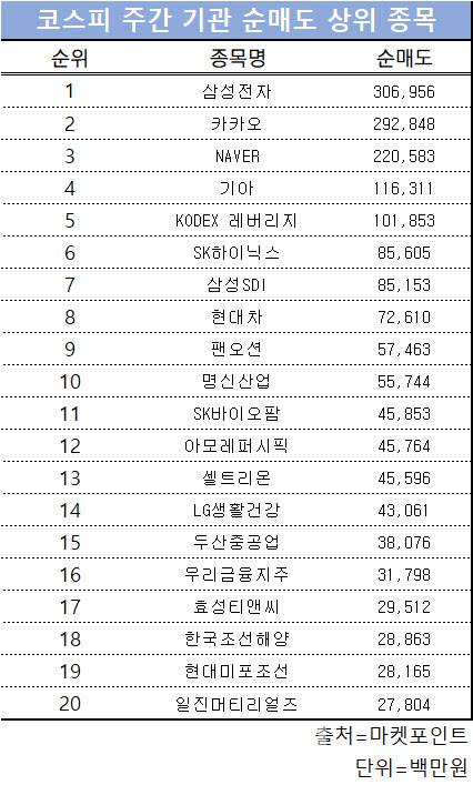 코스피 주간 기관 순매도 1위 '삼성전자'