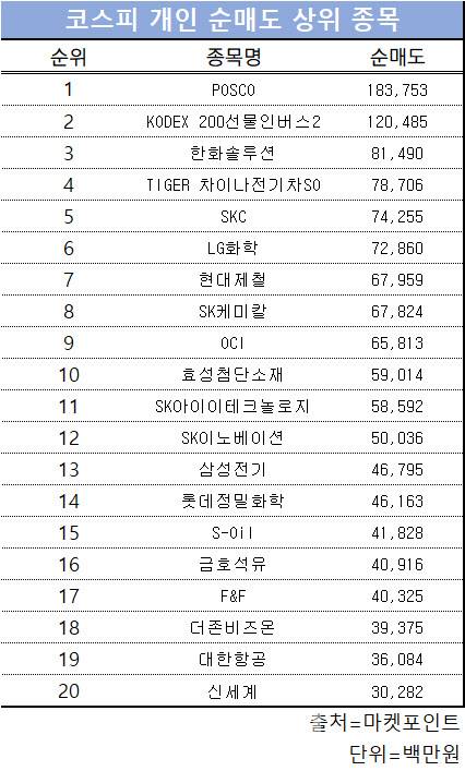 코스피 주간 개인 순매도 1위 'POSCO'