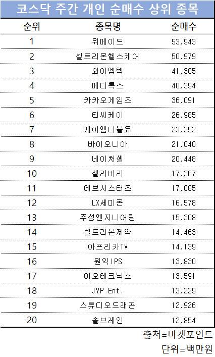 코스닥 주간 개인 순매수 1위 '위메이드'