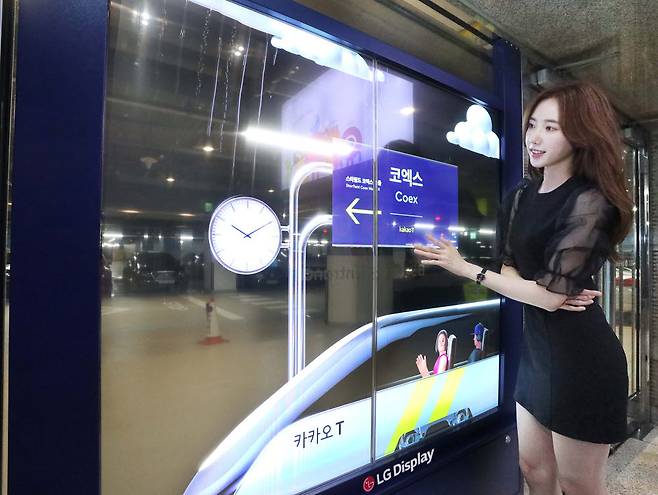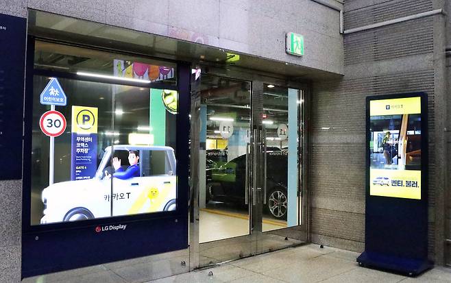 LG디스플레이는 카카오모빌리티와 손잡고 서울 삼성동 코엑스 주차장에 투명 유기발광다이오드(OLED) 디스플레이를 설치했다고 12일 밝혔다.