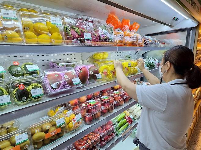 (진주=연합뉴스) 지성호 기자 = 경남 진주청과시장에 지난달 27일 문을 연 소매점 '한소쿠리' 내부. 2021.9.12