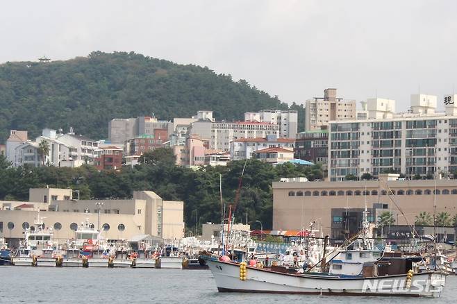 [제주=뉴시스] 양영전 기자 = 제14호 태풍 ‘찬투’가 북상하는 가운데 조업을 마친 한 어선이 12일 오후 제주항에 정박해 있는 배들 뒤로 들어서고 있다. 태풍 찬투는 이날 오전 9시 기준 대만 남쪽 170㎞ 부근 해상을 지났고, 간접 영향권에 든 제주에는 이날 밤부터 최대 300㎜ 이상 많은 비가 내리겠다. 2021.09.12. 0jeoni@newsis.com