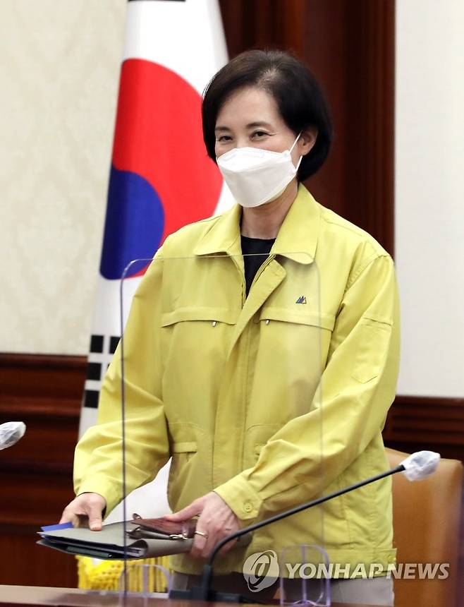 (서=연합뉴스) 백승렬 기자 = 유은혜 사회부총리가 12일 정부서울청사에서 열린 신종 코로나바이러스 감염증(코로나19) 대응 중앙재난안전대책본부 회의에 참석하고 있다. 2021.9.12