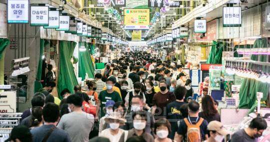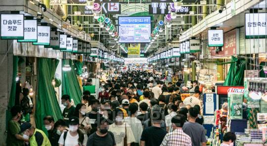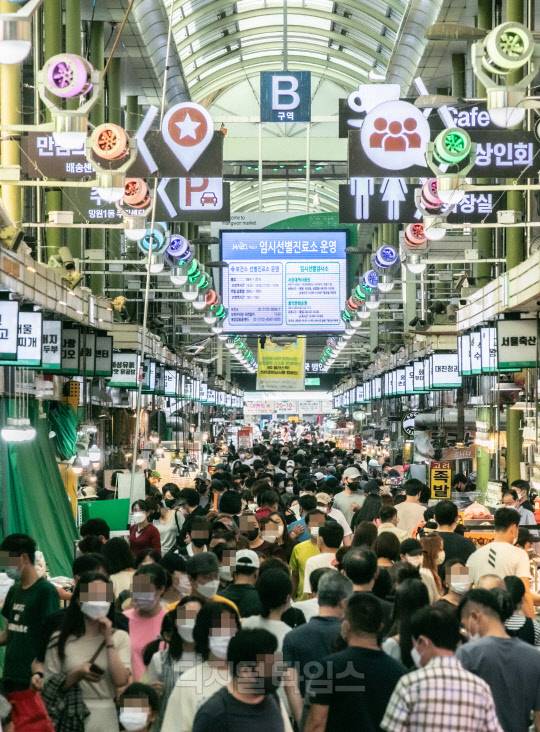 추석 연휴를 엿새 앞둔 12일 서울 마포구 망원시장이 시민들로 북적이고 있다.