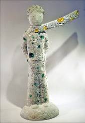돌로 된 어린왕자가 주머니에 손을 찔러넣은 채 서 있다. 프랑스 소설가 앙투안 드 생텍쥐페리가 쓴 《어린왕자》 속 삽화의 순수한 모습 그대로다. 눈에 띄는 건 바람에 휘날리는 듯한 목도리다. 중력을 거스르며 곧게 뻗은 긴 목도리가 자칫 평범하고 밋밋할 수 있는 작품에 생기를 불어넣는다. 조각 곳곳에 박힌 유리와 돌, 도자기 파편 등도 독특한 매력을 더한다. ‘발굴 조각가’ 이영섭의 ‘어린왕자’(사진) 연작이다.
