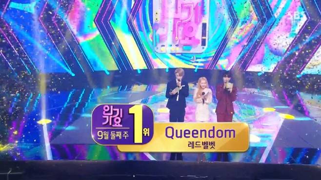 레드벨벳은 '인기가요'에 출연하지 않았음에도 불구, 9월 둘째주 1위의 주인공이 됐다.