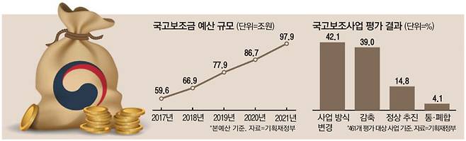 매년 부실한 관리로 도마에 오르는 국고보조금이 여전히 관리 사각지대에 있는 것으로 나타났다. 국고보조금은 이번 정부 들어 매년 규모가 급격하게 늘어 올해 국회 확정 예산 기준으로 100조원에 달하고, 국고보조사업 수만 5000개를 넘을 정도로 덩치가 커졌지만 사업 평가와 관리 수준은 그에 미치지 못하고 있다. 전문가들은 국고보조사업을 대대적으로 재정비해 필요한 곳에 예산이 제대로 쓰이도록 하고 세금 낭비를 줄여야 한다고 목소리를 높였다.