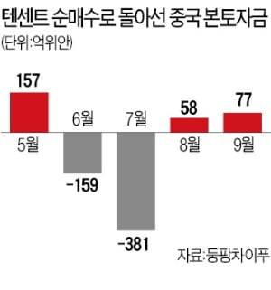 홍콩 증시 대장주 텐센트에는 중국 본토자금이 다시 유입되고 있다.