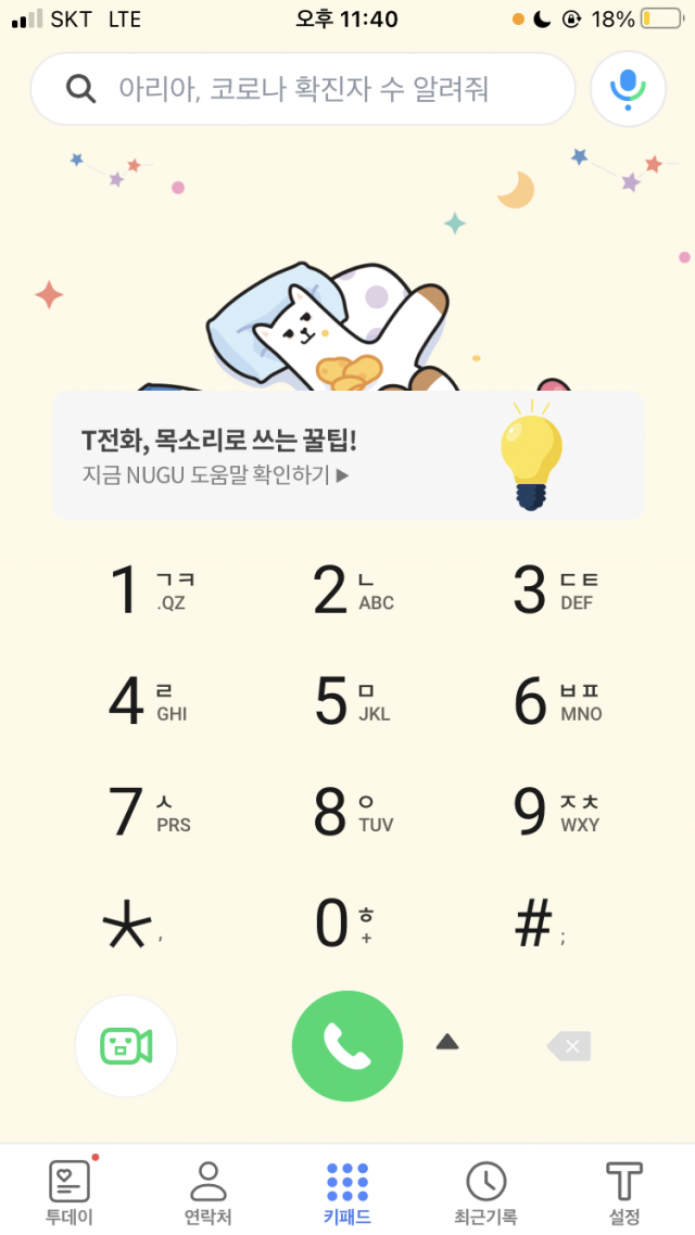 SKT의 음성인식 AI인 'NUGU(누구)' 서비스를 이용해 T전화 앱 내에서 음악을 듣는 것도 가능했다.