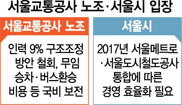 재정난 타개를 위해 2015년부터 1,250원에 머물러 있는 지하철 요금을 인상하는 방안이 검토됐다. 하지만 오세훈 서울시장이 지난 4월 취임 후 공사의 경영합리화가 우선이라는 방침을 정하면서 무산됐다. 공사가 서울시의 방침에 따라 1만 6,000여명의 전체 인력 중 9%인 1,500여명 구조조정 및 임금 동결 등의 방안을 마련하자 노조는 반발하면서 노조원 대상 찬반 투표 실시 등 파업 준비에 착수했다.
