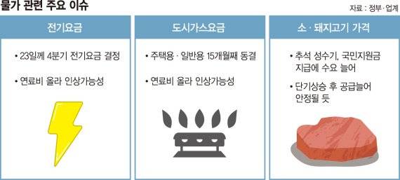 추석 연휴를 앞두고 전기·도시가스 요금뿐 아니라 고깃값 등 도미노 물가상승이 예고되고 있다.