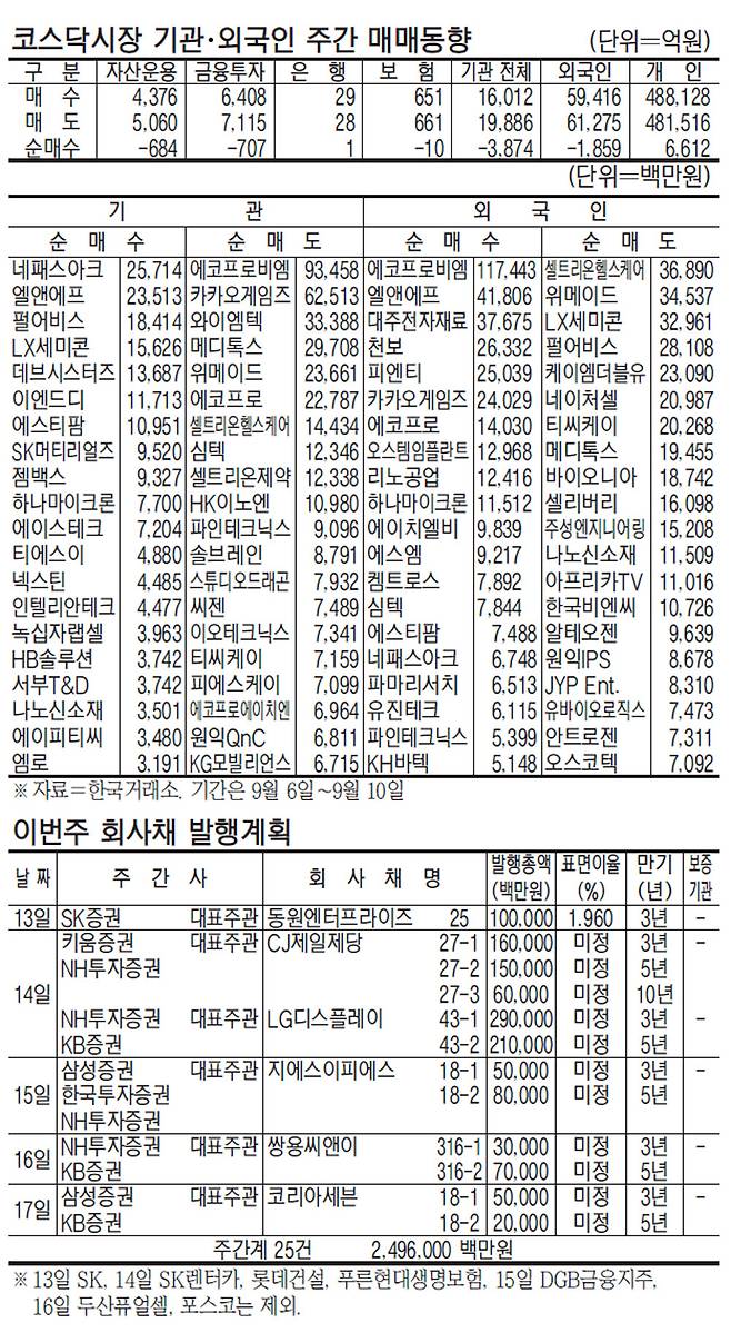 [표] 주간 주요 증시 지표