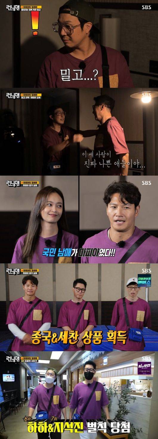 멤버들이 연이어 탈락한 가운데 김종국과 양세찬은 마지막까지 성공해 1등을 차지, 100만원을 얻게 됐다. 하지만 마피아 히든미션이 실패했다는 소식에 멤버들은 김종국이 마피아일 것으로 추측했다. 투표를 통해 뽑힌 용의자는 김종국과 양세찬이었고, 두 사람은 '침묵'을 택해 마지막 마피아는 살아남게 됐다. 마지막 마피아의 정체는 전소민과 김종국이었다.