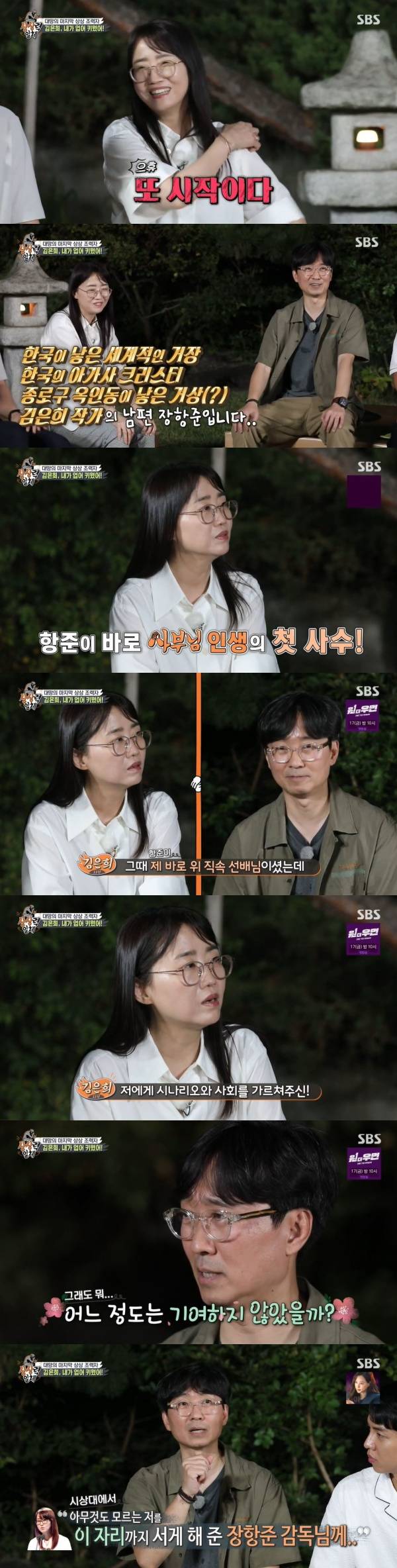 12일 방송된 SBS 예능 프로그램 '집사부일체'에서는 장항준 감독에 대한 고마움을 드러내는 김은희 작가의 모습이 그려졌다.