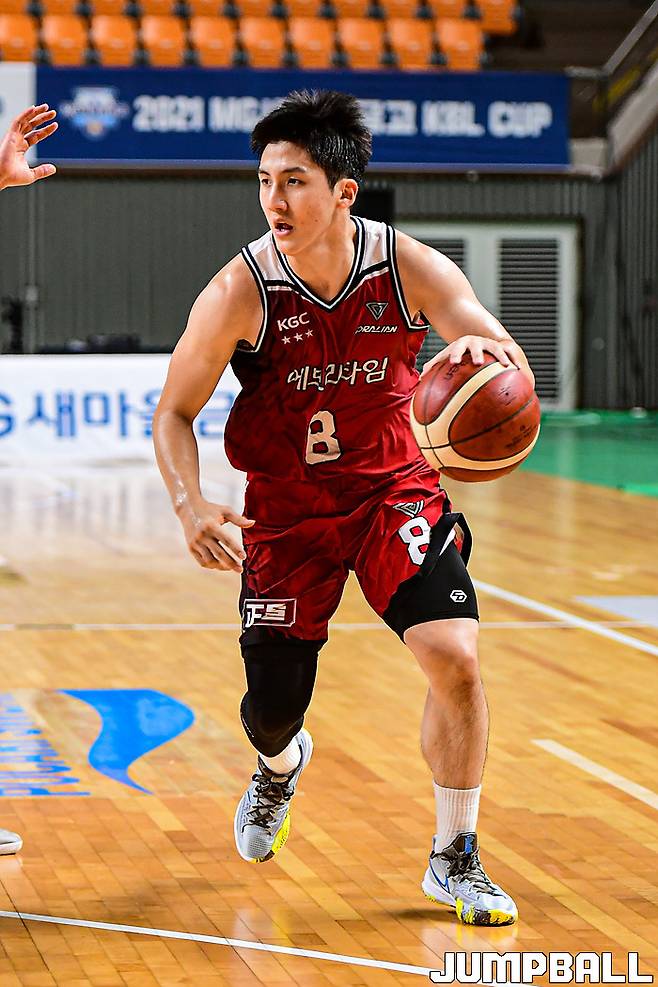 12일 경상북도 상주시 상주실내체육관에서 열린 '2021 MG새마을금고 KBL컵 대회' 부산 KT와 안양 KGC인삼공사의 경기, KGC인삼공사 우동현이 공격을 시도하고 있다.