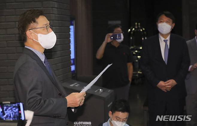 [서울=뉴시스] 국회사진기자단 = 국민의힘 최재형 대선 경선 예비후보가 12일 서울 여의도 글래드 호텔에서 윤석열 예비후보와의 회동을 마친 뒤 ‘고발사주’ 사건관련 입장문을 낭독하고 있다. 2021.09.12. photo@newsis.com