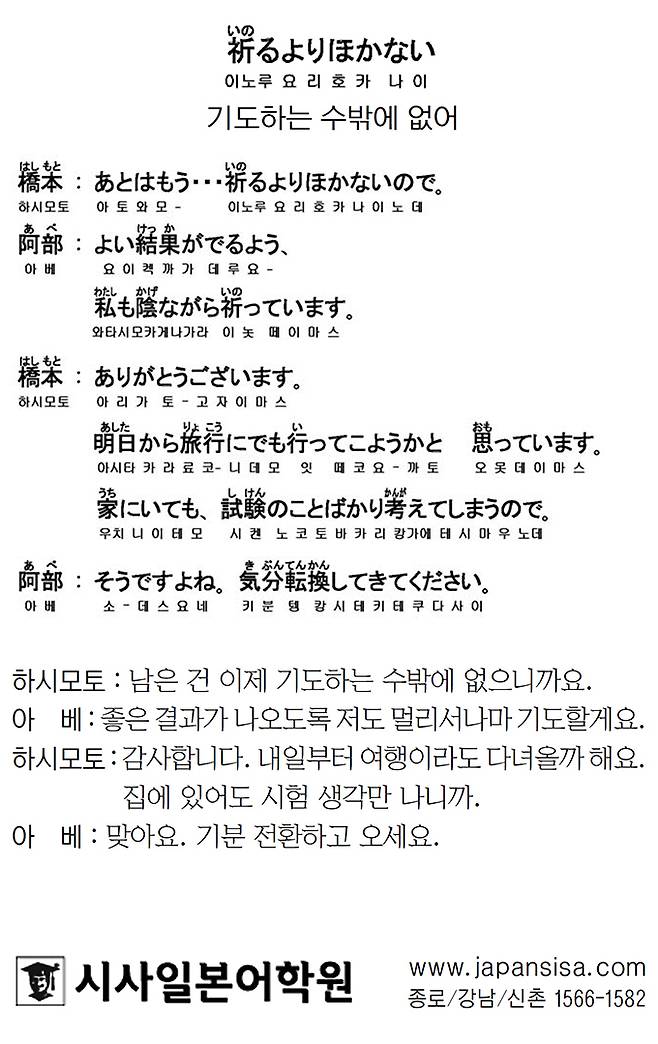 [시사일본어학원의 초단기 일본어 회화] 기도하는 수밖에 없어