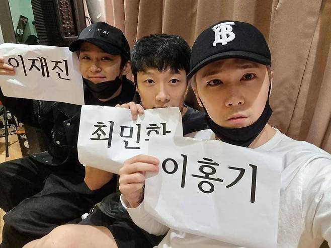 공개된 사진에는 각자의 이름이 쓰여진 종이를 들고 셀카를 찍는 이홍기와 최민환, 이재진의 모습이 담겼다. 2007년 데뷔 후 14년 간 함께하며 변치 않는 우정을 과시한 세 사람에게 팬들의 눈길이 모였다.