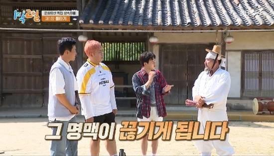 (엑스포츠뉴스 원민순 기자) '1박 2일' 멤버들이 줄타기부터 택견까지 명인들을 만났다.