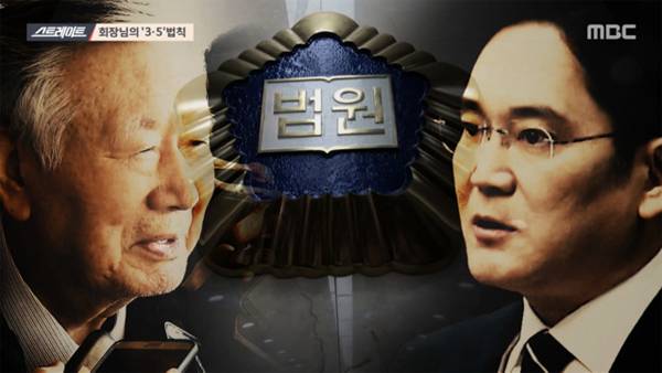 재벌위한 3.5법칙 없어져야 <스트레이트>는 기업인들의 형량이 징역3년에 집행유예5년으로 굳어지고 있는 부당한 관행을 비판했다.