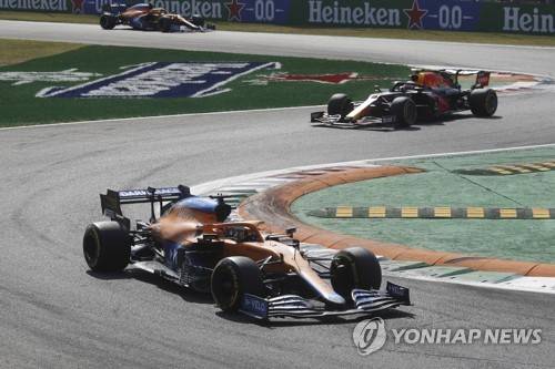 epa09463471 Australian Formula One driver Daniel Ricciardo (front) of McLaren F1 Team in action during the start of the Formula One Grand Prix of Italy at the Autodromo Nazionale Monza race track in Monza, Italy, 12 September 2021. EPA/MATTEO BAZZI