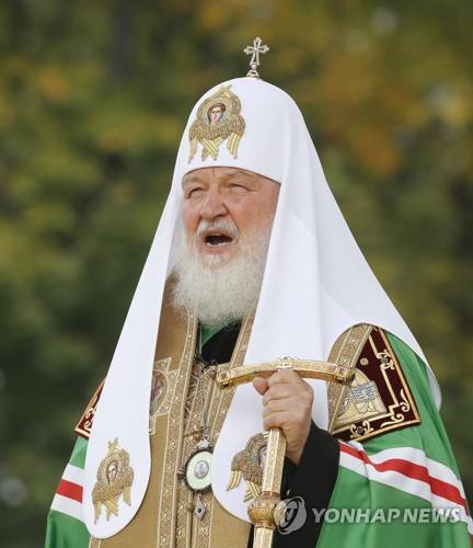 epa09463490 Patriarch Kirill of Moscow and All Russia attends a religious service celebrating the 800th birthday of Grand Duke Alexander Nevsky near the Alexander Nevsky Lavra in St. Petersburg, Russia, 12 September 2021. St. Alexander Nevsky is considered the heavenly protector of St. Petersburg. EPA/ANATOLY MALTSEV