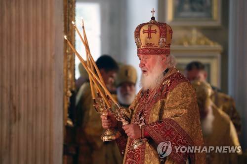 epa09463487 Patriarch Kirill of Moscow and All Russia attends a religious service celebrating the 800th birthday of Grand Duke Alexander Nevsky at the Trinity Cathedral of the Alexander Nevsky Lavra in St. Petersburg, Russia, 12 September 2021. St. Alexander Nevsky is considered the heavenly protector of St. Petersburg. EPA/ANATOLY MALTSEV