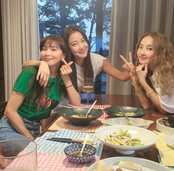 이날 한채영이 올린 사진을 보면 식사를 마친 오윤아, 이소연, 한채영이 단란한 분위기 속에 카메라를 응시한 모습이 담겨 있다.