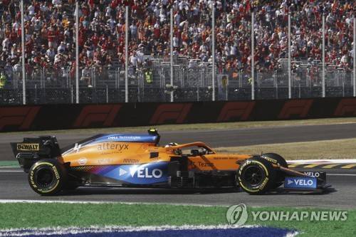 epa09463529 British Formula One driver Lando Norris of McLaren F1 Team in action during the start of the Formula One Grand Prix of Italy at the Autodromo Nazionale Monza race track in Monza, Italy, 12 September 2021. EPA/MATTEO BAZZI