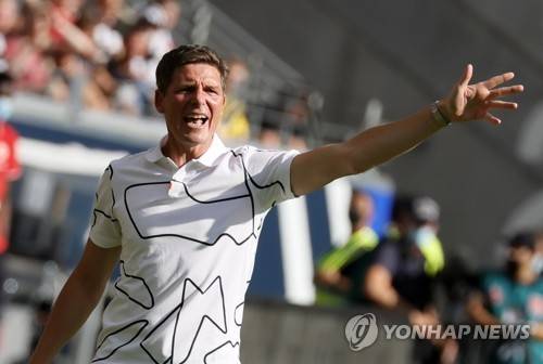 epa09463602 Frankfurt's head coach Oliver Glasner reacts during the German Bundesliga soccer match between Eintracht Frankfurt and VfB Stuttgart in Frankfurt, Germany, 12 September 2021. EPA/RONALD WITTEK CONDITIONS - ATTENTION: The DFL regulations prohibit any use of photographs as image sequences and/or quasi-video.